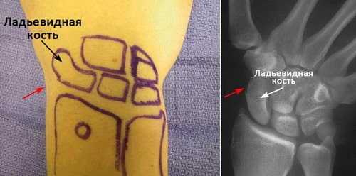Любая травма области лучезапястного сустава должна быть оценена врачом травматологом, так как переломы мелких костей могут быть ошибочно расценены пациентом как ушиб. Но последствия перелома ладьевидной кости руки могут быть очень серьезными (см. пояснение в тексте).