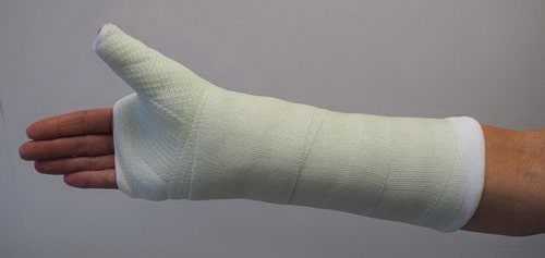 При таких переломах выполняется иммобилизация лучезапястного сустава и большого пальца кисти гипсовой или полимерной фиксирующей повязкой.