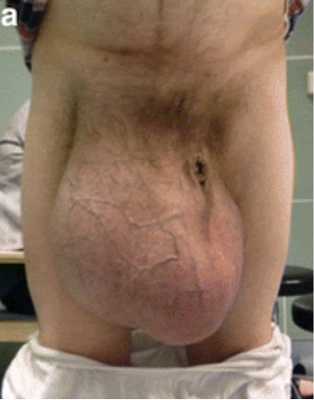 Рис 1. Гигантская пахово-мошоночная грыжа [1]