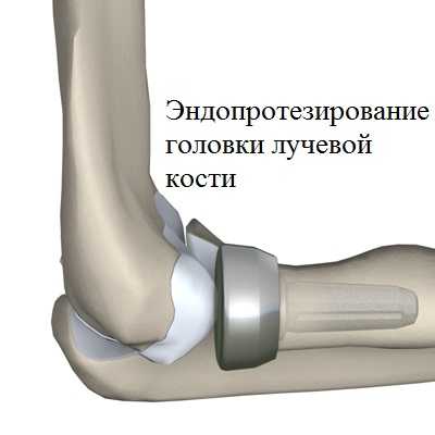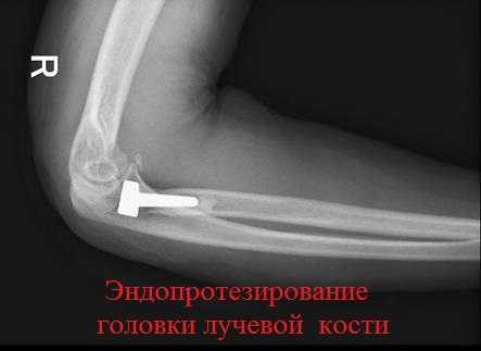 В некоторых случаях при многооскольчатых переломах головки лучевой кости, когда соединить и зафиксировать отломки невозможно, показано эндопротезирование. Эндопротезирование головки лучевой кости дает отличные отдаленные результаты.