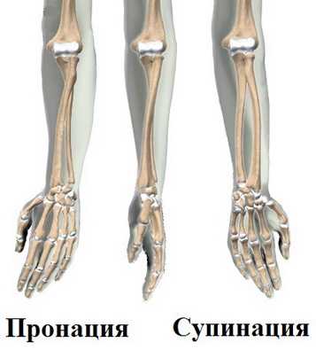 Кроме этого, головка лучевой кости совершает ротационные движения относительно локтевой кости, благодаря чему возможно вращение предплечья. Вращения предплечья внутрь или наружу в медицине называются, соответственно, пронация и супинация.