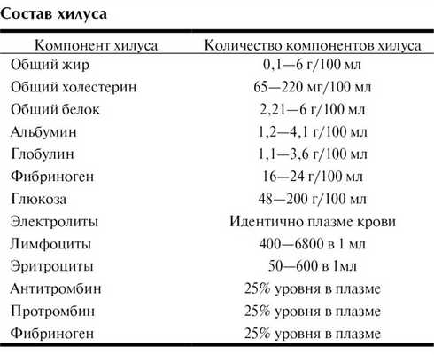 В таблице приведен состав хилуса, содержащегося в грудном протоке [19].
