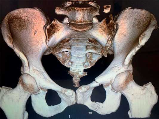 Пациентка К., 30 лет, была госпитализирована с переломом лонной и седалищной костей слева со смещением, переломом боковых масс крестца слева (рис. 1). Рис. 1. Данные К.Т. пациентки К., 30 лет, при поступлении.