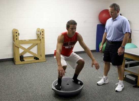 Лечебную физкультуру и комплекс физиотерапевтических процедур желательно проходить в условиях реабилитационного центра минимум 8 недель под руководством методиста-реабилитолога. К этому времени должна быть достигнута полная амплитуда движений в колене, отработана правильная походка. Занятия проводятся уже в специальном наколеннике нежесткого типа. Вернуться к обычной жизни без ограничений разрешается сугубо после прочного укрепления связки-заместителя. Окончательное восстановление крестообразной связки коленного сустава, если была использована пластика, наступает не ранее чем через 3 месяца, иногда только через полгода.