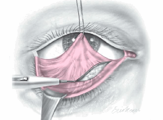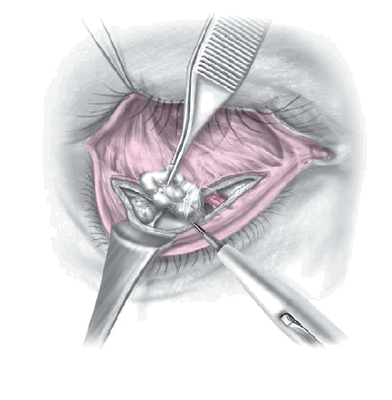 - Хирург осуществляет миниатюрный прокол в области конъюнктивы, который располагается за зоной роста ресниц. Больше никаких разрезов не проводится.