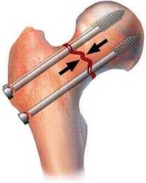 Суть заключается в особой технике винтовой фиксации. Винты ввинчиваются у вертелов, проходят внутри шейки параллельно ее поверхности и заканчиваются в центральной части головки бедренной кости.