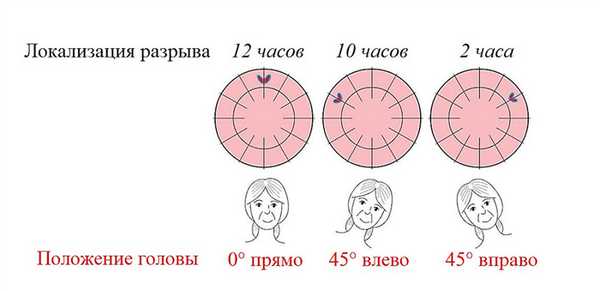 Рис.2 Положение головы пациента в зависимости от места разрыва