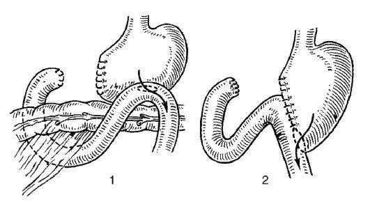 1 - резекция желудка по Бильроту II; 2 - резекция желудка по Бильроту II в модификации Гофмейстера-Финстерера