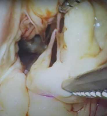 Рис. 2. Интраоперационная ревизия митрального клапана с проведением водной пробы.