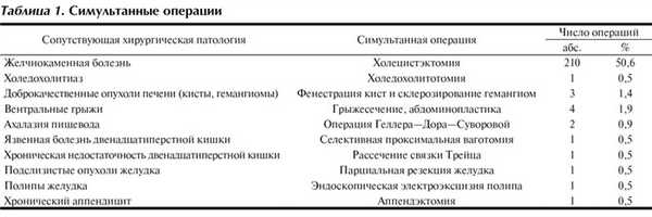 Ряду больных выполняли более 2 симультанных операций (табл. 1).