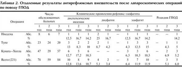 Отдаленные результаты хирургического лечения ГПОД представлены в табл. 2.