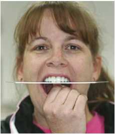 Определение горизонтального компонента окклюзионной плоскости зачастую связано с субъективной ошибкой, обусловленной тем, что слуховые каналы и глаза находятся не на одном уровне. Различный наклон головы, нарушение осанки и т.д., также приводят к ошибке в определении положения челюсти в пространстве. При применении симметричного прикуса ошибка сведена к минимуму, поскольку процедура предельно упрощена и не используются координаты, которые могут быть смещены в неправильное положение. Необходимо только убедиться в том, чтобы вертикальный компонент симметричного прикуса совпадал с вертикальной продольной линией лица. Горизонтальный компонент окклюзионной плоскости автоматически будет находиться под углом 90 градусов к продольной оси лица, что отражает правильное положение окклюзионной плоскости по горизонтали.