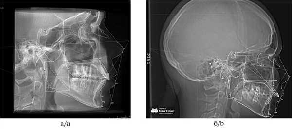 а — до ортодонтического лечения; б — после ортодонтического лечения.