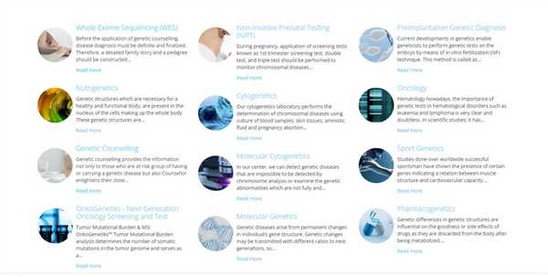 В сотрудничестве с мировыми лидерами в области молекулярной диагностики мы предлагаем более 200 молекулярно-генетических исследований, основанных на самых современных технологиях.