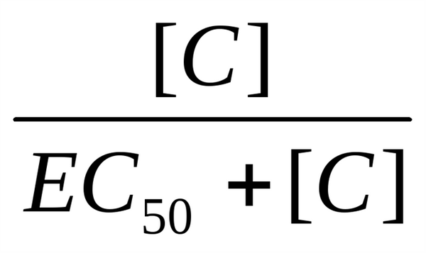 Эффект определяется вероятностью активации рецептора при связывании с лигандом, т.е. его внутренней активностью (Ке), поэтому E = Ke×[RL]. При этом эффект максимален при Ке=1 и минимален и Ке=0. Естественно, что максимальный эффект описывается соотношением Emax = Ke×[Rобщий], где [Rобщий] - общее число рецепторов для данного лиганда