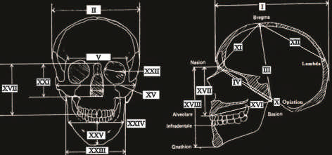 Следует подчеркнуть, что единых показателей, характеризующих черепа различных групп населения, не существует. Строение и размеры черепов могут заметно варьировать в зависимости от ряда внутренних и внешних факторов (расы, прижизненной деформации, влияния внешней среды).