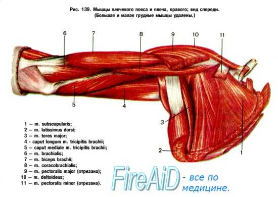Вверху она начинается от ключицы и клювовидного отростка лопатки.