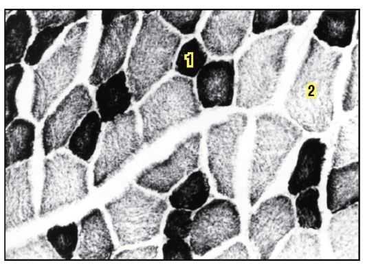 Рисунок 1. 1 — тонкие нити (I тип, красные нити) — не интенсивная, длительная работа.