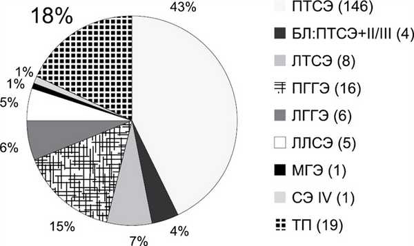 ПТСЭ — правосторонняя трисекторэктомия; БЛ — билобарная резекция, ЛТСЭ — левосторонняя трисекторэктомия; ПГГЭ — правосторонняя гемигепатэктомия; ЛГГЭ — левосторонняя гемигепатэктомия; ЛЛСЭ — левая латеральная секторэктомия; МГЭ — мезогепатэктомия; СЭ — сегментэктомия; ТП — трансплантация печени.