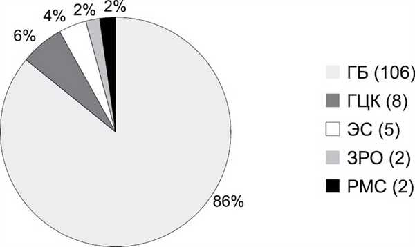 ГБ — гепатобластома, ГЦК — гепатоцеллюлярная карционма, ЭС — эмбриональная саркома, ЗРО — злокачественная рабдоидная опухоль, РС — рабдомиосаркома.