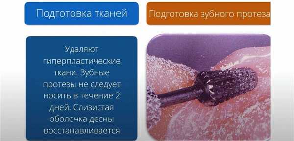 - Удаление мягких тканей десны, подверженных гипертрофии, и прочих участков слизистой;