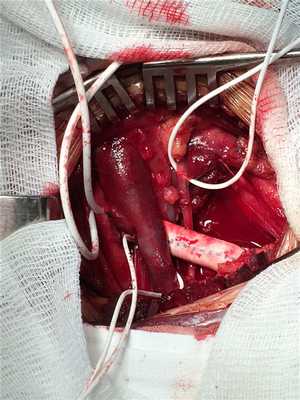 Сразу после постановки катетера было измерено центральное венозное давление (ЦВД), которое превышало норму и составило 25 см вод.ст. При этом у больной отсутствовали проявления сердечной недостаточности. Обращало на себя внимание поступление из катетера при аспирации шприцем крови алого цвета. Ввиду признаков артериализации венозной крови катетер перекрыли и дальнейшую инфузионную терапию проводили по катетеру, установленному в правую кубитальную вену, образец крови был отправлен в лабораторию для анализа газового состава и кислотно-щелочного равновесия (КЩР). Также была выполнена рентгенография грудной клетки.