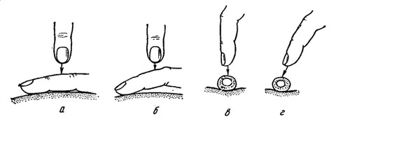 Рис.7.Положение пальца-плессиметра и пальца-молоточка: