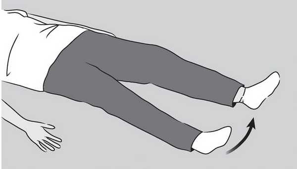 - прижмите выпрямленную ногу к поверхности кровати, задержитесь на 5 секунд в достигнутом напряжении, затем расслабьте конечность (достаточно 10-15 повторов за одно занятие)