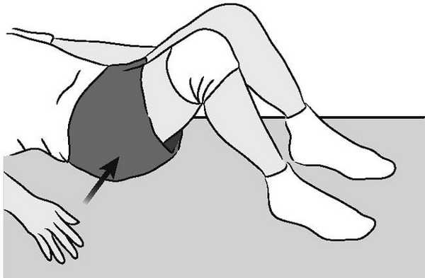 - Можно использовать жгут или просто давить на колени руками в случае его отсутствия.