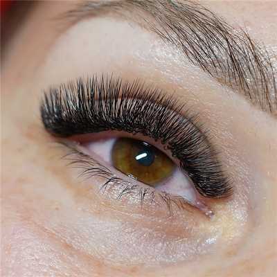 Особый наклон в моделировании и проработка внешнего угла с соблюдением рядности позволяет загустить ресницы так, чтобы приблизить результат к привычному макияжу со стрелками.