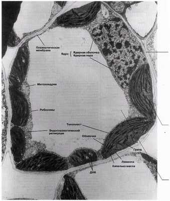 Рис. 5.13. Электронная микрофотография тонкого среза типичной растительной клетки — клетки мезофилла листа (х15 000).