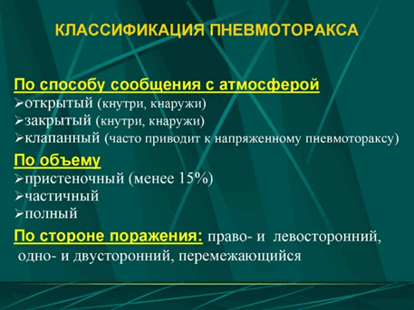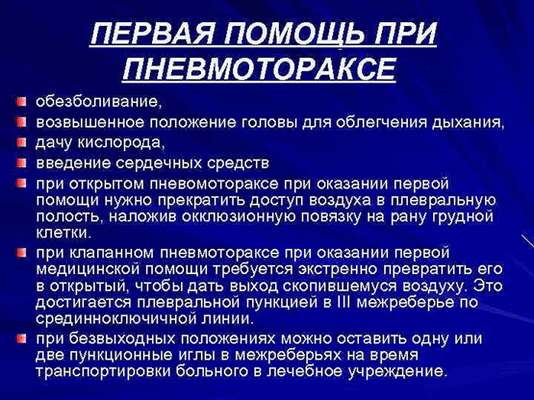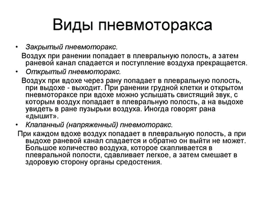 Оказание первой врачебной помощи при разных видах пневмоторакса.