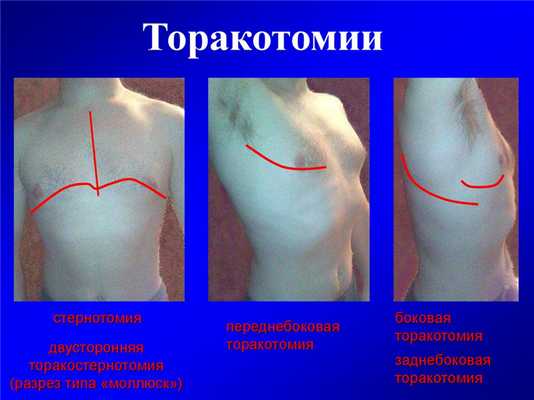 Технику классических оперативных вмешательств на грудной стенке и органах грудной стенки: