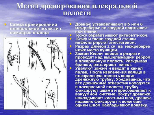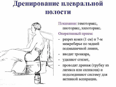 Дренирование плевральной полости через межреберье и с резекцией ребра, показания, техника.