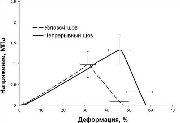 Рис. 2. Сравнительная характеристика эластичности швов.