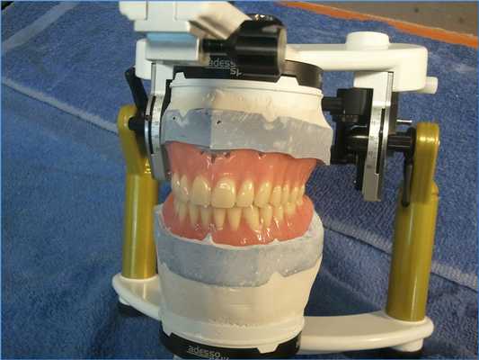 Финальным этапом работы является гипсовка в артикуляторе, то есть специальном приборе, позволяющим зафиксировать элементы неподвижно. Благодаря ему сохраняются собранные данные на всем протяжении изготовления протеза.