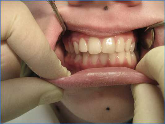 При глубокой дизокклюзии нижние резцы травмируют слизистые полости рта, вследствие чего на них появляются раны, язвы.