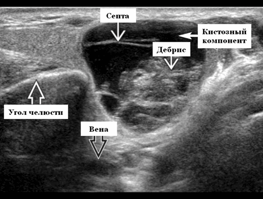 УЗ-признаки опухоли Уортина околоушной железы