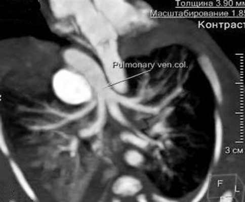 Рис. 9. МСКТ, аксиальная проекция, показан единый коллектор легочных вен