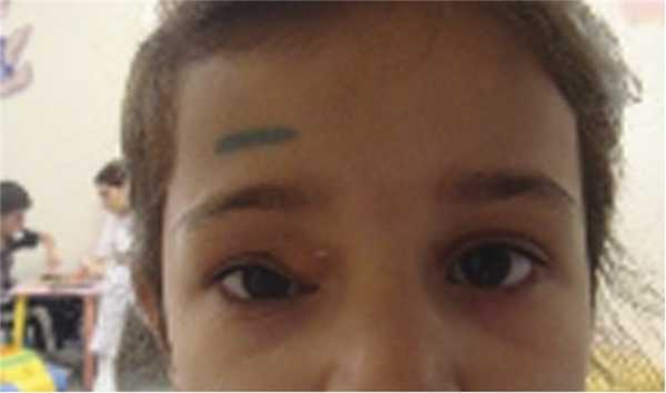 Рис. 4. Фотография ребенка с дермоидной кистой внутреннего квадранта орбиты.