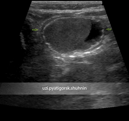 Таким образом, своевременное выявление энтерокистомы, надежно и достоверно проведенный с помощью УЗИ дифференциальный диагноз с другими кистами брюшной полости, плановое ее хирургическое лечение предупреждает возможность развития смертельно - опасных осложнений этой редкой разновидности кист брюшной полости.