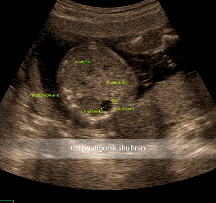 И вроде бы все просто, но вот только с интерпретацией проблемы: что это за киста - яичника, селезенки, почки, брыжейки, сальника, атрезия ли это 12-перстной кишки, или это дупликационная кишечная киста, мекониевая киста, а может быть, это вовсе не киста, а похожее по ультразвуковому изображению заболевание — лимфангиома, пиелоэктазия, мегацистик, мегалоуретер, гипернефрома, непроходимость кишечника и т.д. - тут-то как раз проблемы.