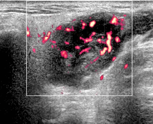 - Отмечается внутренняя васкуляризация на цветном доплеровском исследовании.