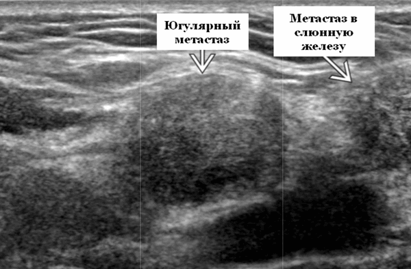 Метастаз в поднижнечелюстной слюнной железе при ультрасонографии