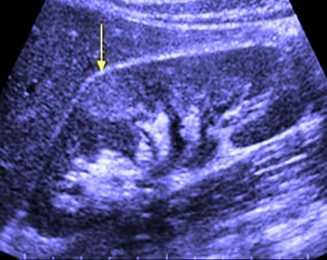 - нарушается чёткость деления ткани внутренней среды на корковое и мозговое вещество, происходящее вследствие отёка и искажения эхогенности;