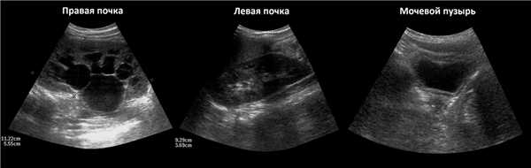 Рисунок. На УЗИ в правой почке расширена лоханка, большие и малые чашечки, мочеточник неизменен. Левая почка и мочевой пузырь без патологических изменений. Заключение: Обструкция лоханочно-мочеточникового соединения справа. Гидронефроз справа, 3 степень.