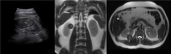 Клинический случай. Ребенок А., 13 лет, поступил в Детскую областную больницу г. Калининграда с предварительным диагнозом - аплазия левой почки, киста культи мочеточника слева? Из анамнеза известно, что 3 года назад при ультразвуковом исследовании (УЗИ) у пациента выявлена аплазия левой почки; при цистоскопии устье левого мочеточника не обнаружено; на его месте найдено слепо заканчивающееся пупковидное втяжение.