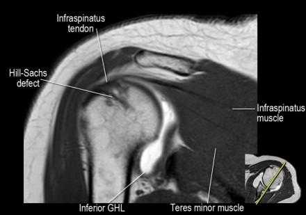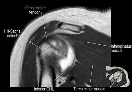 - обратите внимание на небольшое повреждение Хилл-Сакса