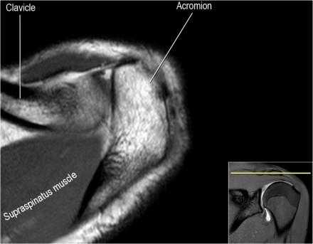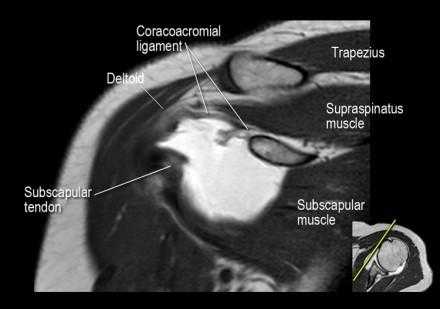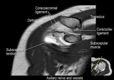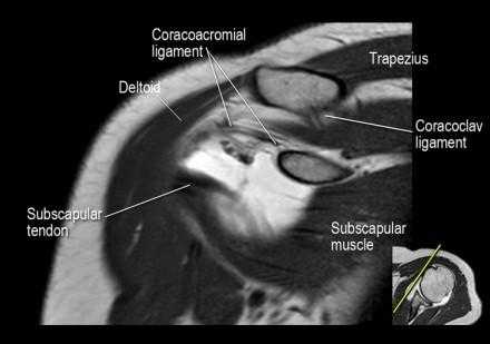 - обратите внимание на клювоакромиальную связку (coracoacromial ligament).
