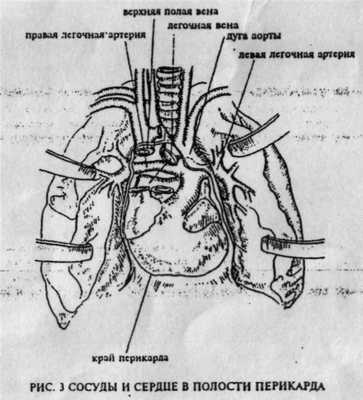- верхняя полая вена (v. cava superior) - спускается вдоль правого края грудины до второго межреберья, где вступает в полость перикарда;